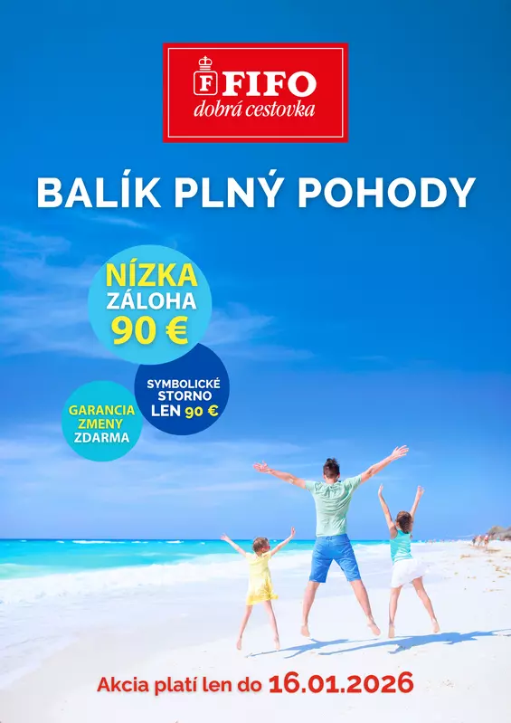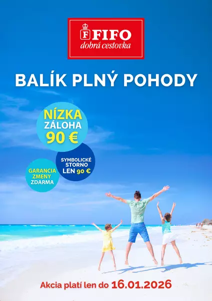 Ak sa Vám zmenia plány, zájazd môžete zrušiť až do 31.3.2026 s nízkym storno poplatkom len 90 € za každého cestujúceho.