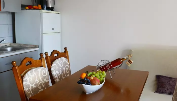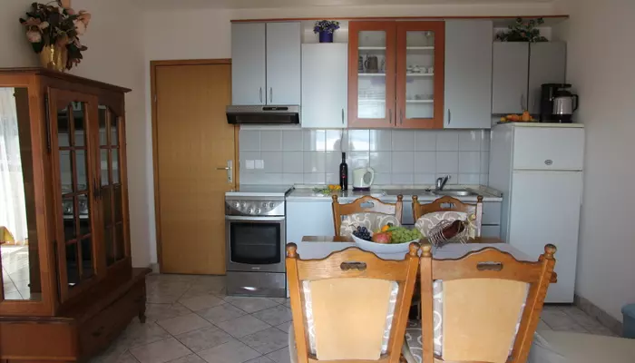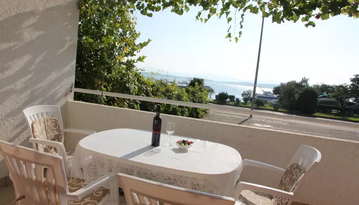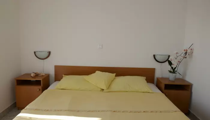 - APT 1/2+2 - 2-lôžková spálňa s manželskou posteľou, s balkónom čiastočne orientovaný na morskú stranu , denná miestnosť s rozkladacou pohovkou pre 1 dospelú osobu alebo 2 deti, z oboch spální sa vychádza na dlhý balkón, kuchynský kút, druhý balkón čiastočne orientovaný na morskú stranu