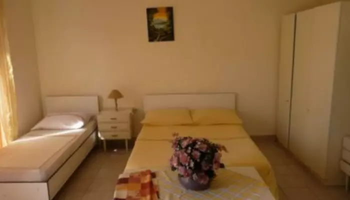 - APT 1/4+1(+2) - 1. poschodie: 2-lôžková spálňa, 2-lôžková spálňa s 1 prístelkou, denná miestnosť s rozkladacou pohovkou pre 2 osoby, z oboch spální sa vychádza na dlhý balkón, kuchynský kút, kávovar