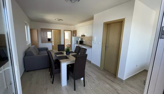 - APT 1/2+2 - jedna 2-lôžková spálňa, denná miestnosť s rozkladacou pohovkou pre 1 dospelú osobu alebo dve deti do 12 rokov, kuchynský kút