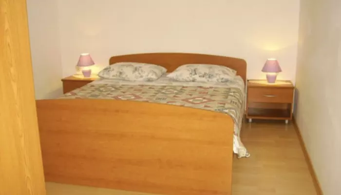 - 2x APT1/4+1 - 1. a 2. poschodie: dve 2-lôžkové spálne, jedna s manželskou posteľou, druhá s oddelenými lôžkami, denná miestnosť s kuchynským a jedálenským kútom a s rozkladacou pohovkou pre 5.osobu, priestranný balkón orientovaný na morskú stranu