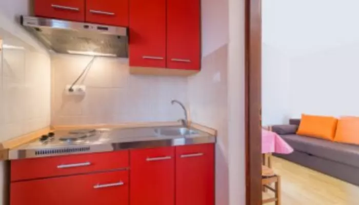 - štúdio 1/2(+2) - 1.poschodie: miestnosť s manželskou posteľou a rozkladacou pohovkou pre dve osoby (odporúčame pre deti), oddelená miestnosť s kuchynským kútom a chladničkou