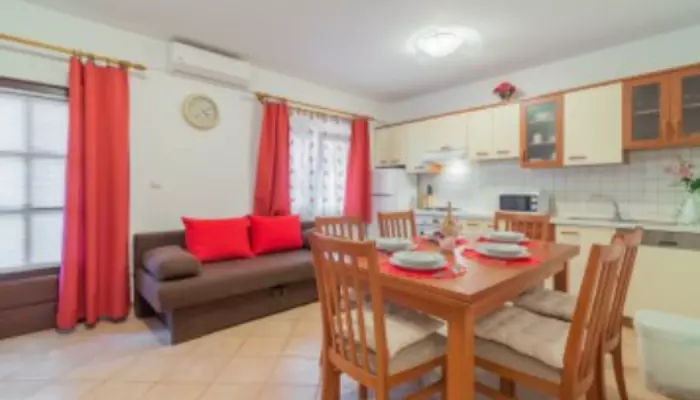 Apartmánový dom s rodinnou atmosférou sa nachádza v tichej ulici neďaleko pláže. Ostrov Vir je vyhľadávaný aj vďaka lagúne s liečivým bahnom, ktoré má priaznivé účinky najmä pri bolestiach pohybového aparátu a kožných ochoreniach.