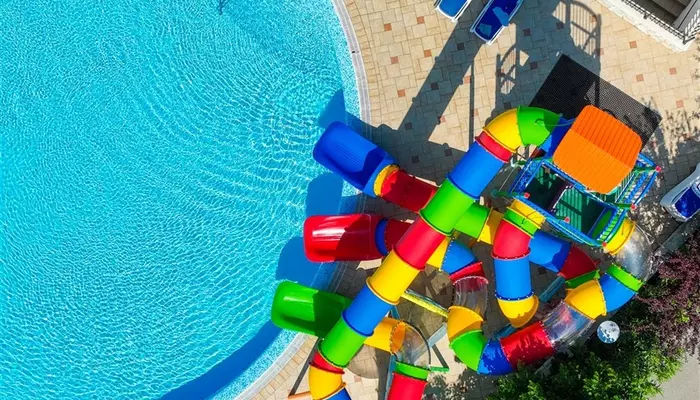 - 4 vonkajšie bazény, vyhradená časť pre deti, tobogány