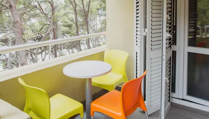 - APT 1/4+1 – dve 2-lôžkové spálne, denná miestnosť s prístelkou pre 1 osobu do 12 rokov formou rozkladacieho kresla, kuchynský a jedálenský kút, terasa alebo balkón s posedením