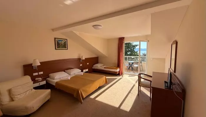 - jednolôžkové izby orientované na parkovú stranu (na pohorie Biokovo)