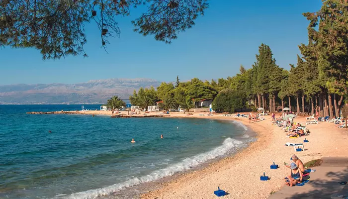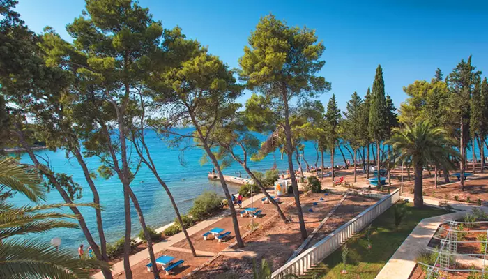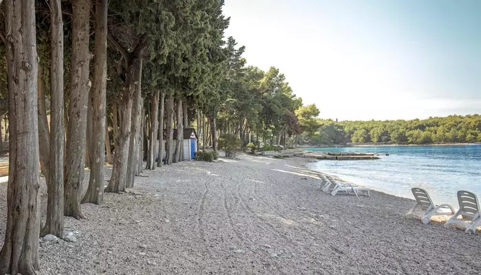 - široká piesočnato-kamienková pláž lemovaná zeleňou v zálive Vela Luka s pozvoľným vstupom do mora