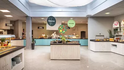 - suity Superior 2+2 - spálňa s manželskou posteľou oddelená od dennej miestnosti s kuchynským kútom a rozkladacou pohovkou pre dve osoby, orientované na parkovú alebo morskú stranu (za príplatok, info v CK)