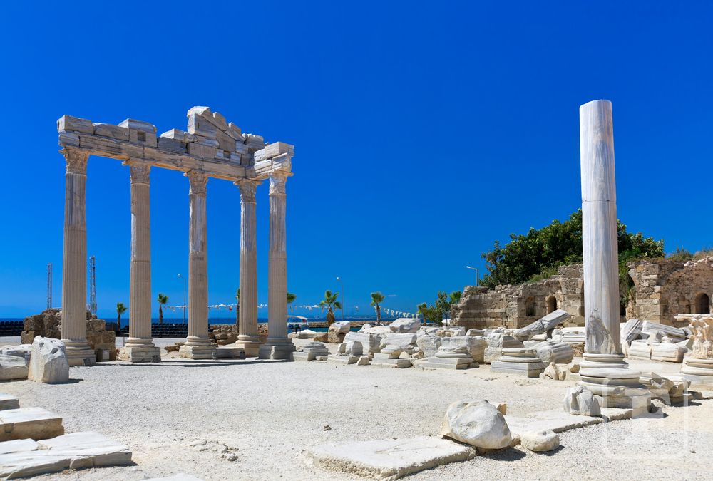 Legenda tvrdí, že mesto Side si vybrala sama Kleopatra pre romantické schôdzky s Marcom Antoniom. Kedysi bolo toto mesto malou rybárskou dedinkou obklopenou opustenými plážami. V 2. a 3. storočí nastal rozkvet a zo Side sa stal významný prístav, ktorého bohatstvo pochádzalo predovšetkým z pirátskych lupov a obchodu s otrokmi. Antické divadlo v Side bolo jedným z najväčších v oblasti Anatólie a pôvodne mohlo pojať až 15 000 divákov. Oproti ruinám divadla dnes nájdete i zvyšky Agory, kde prebiehali známe trhy s otrokmi. Pri prístave sa nachádzajú ruiny Apollónovho chrámu z 2. storočia nášho letopočtu.