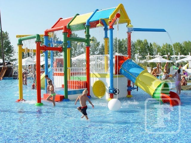 - vonkajší bazén, vírivka, detský bazén, 2 tobogany