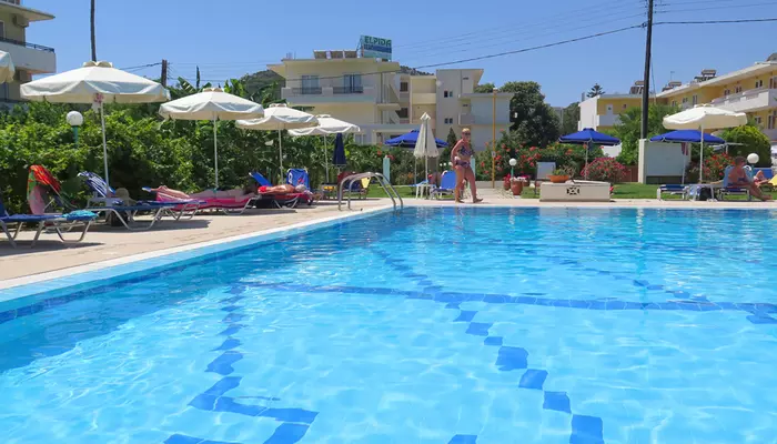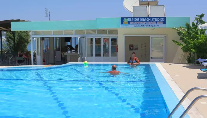 Štúdiá Elpida Beach sa nachádzajú v pokojnej časti obľúbeného letoviska Faliraki. Komplex tvorí trojica dvojposchodových budov, ku ktorým patrí bazén a malý snack bar priamo pri pláži. Do centra letoviska, kde nájdete množstvo obchodov, taverien, diskoték, barov, lunapark a vodný park, sa dostanete pohodlnou 15-minútovou prechádzkou.