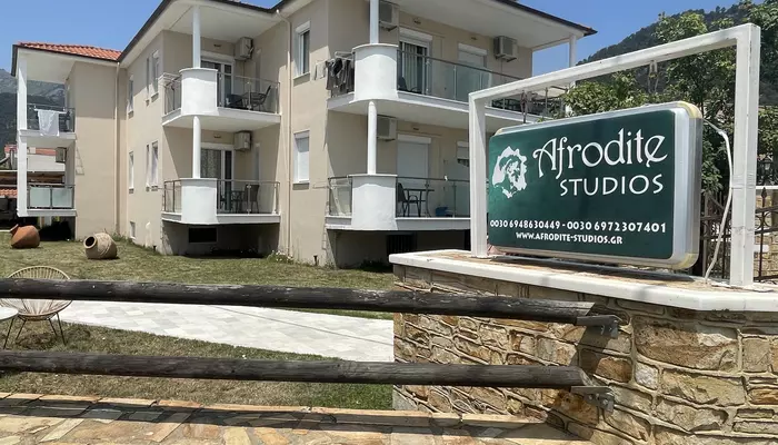 Štúdiá Afroditi v stredisku Skala Panagia sa nachádzajú v blízkosti pláže Chrissi Ammoudia (Zlatá pláž). Biely piesok, tyrkysové more a zelené hory. Celý záliv patrí k najkrajším miestam na ostrove Thassos.