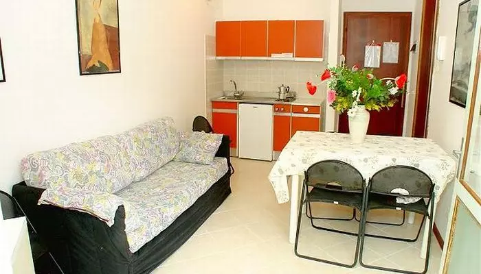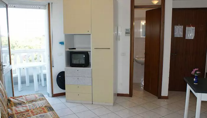 - Štúdio typ A2 pre 2 osoby: Štúdio s rozkladacím dvojlôžkom, TV, kuchynský kút, balkón, kúpeľňa so sprchou a WC.