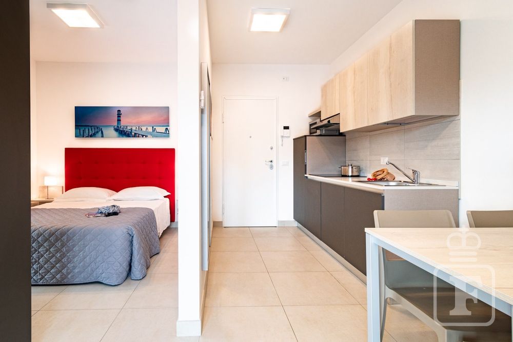 Moderná rezidencia s bazénom na streche sa nachádza asi 350 m od pláže. Od centra letoviska je vzdialená 150 m. Každé štúdio má jedno parkovacie miesto.