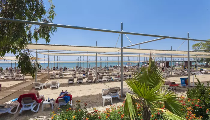 - vlastná piesočnatá pláž s pozvoľným vstupom do mora